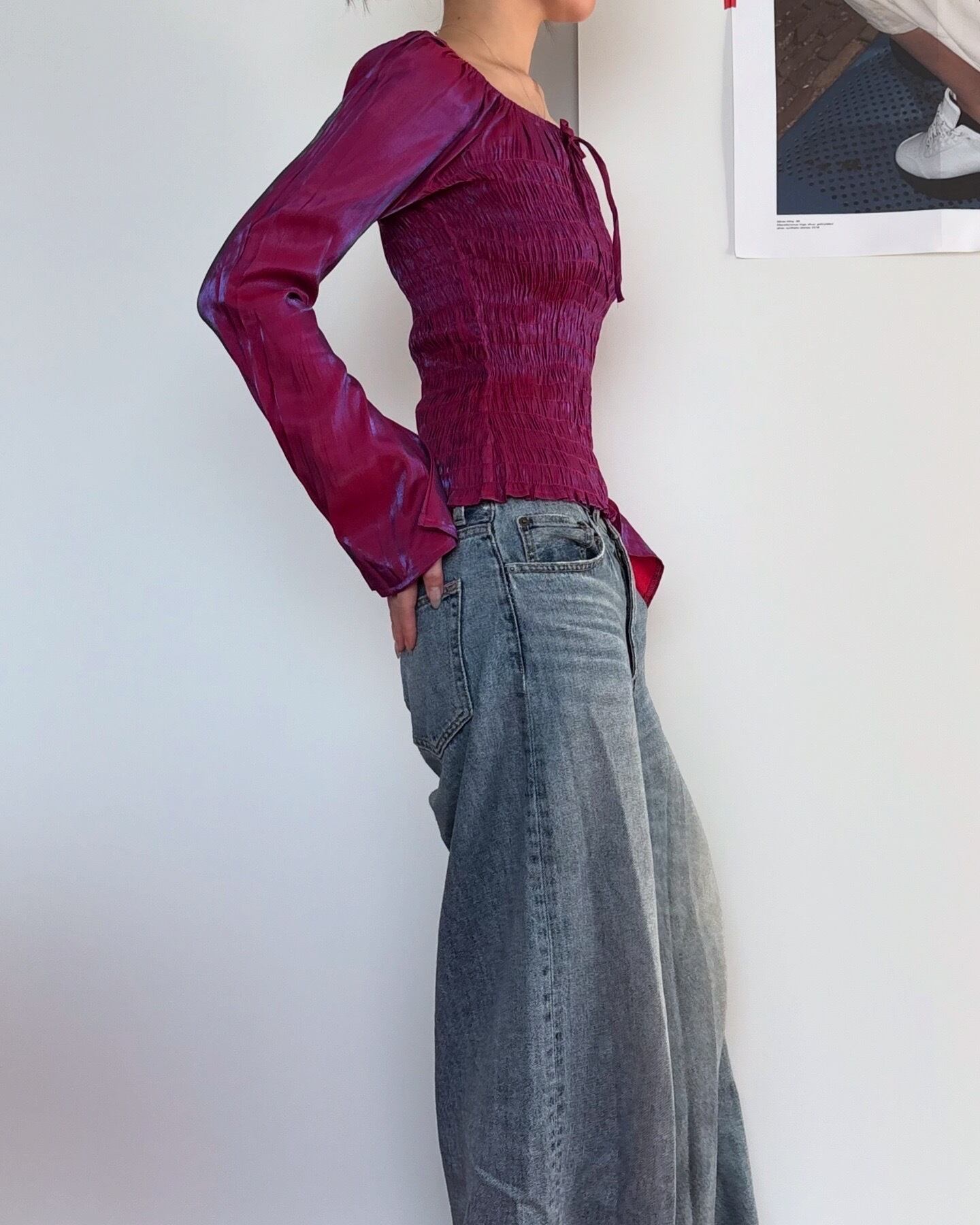 深みのあるベリー色に、ふとした動きで浮かぶパープルの艶。