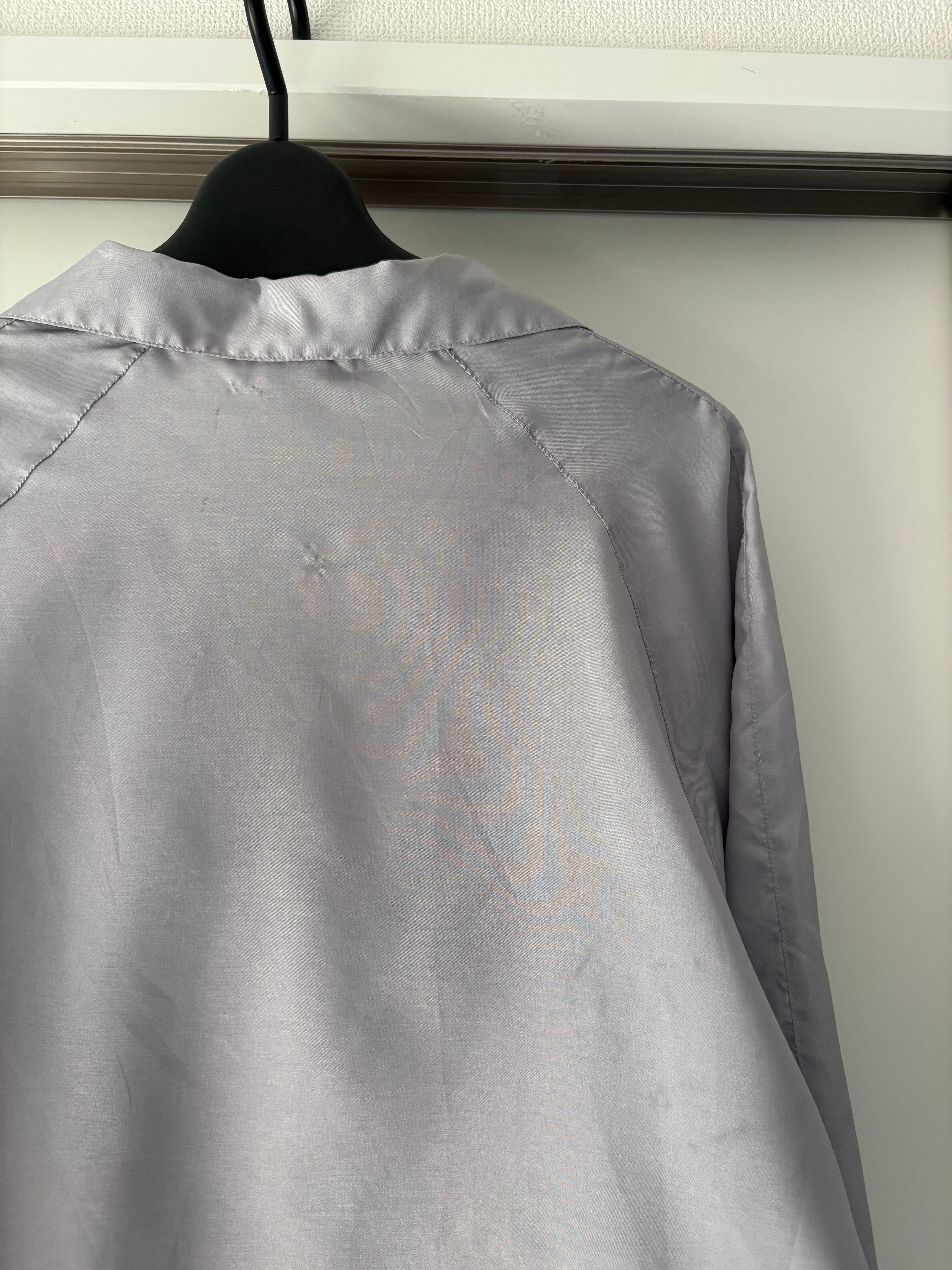 淡いラベンダーグレーに光がすべるナイロンとシルクの間のようなタッチ
