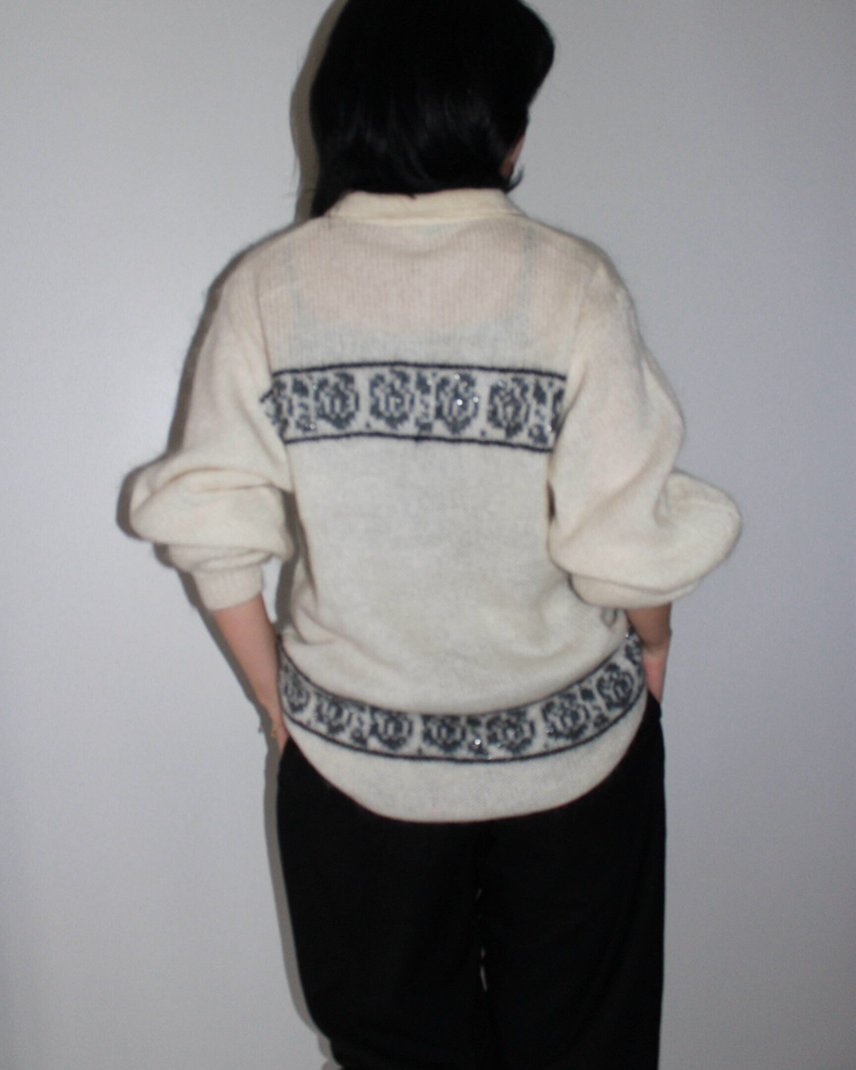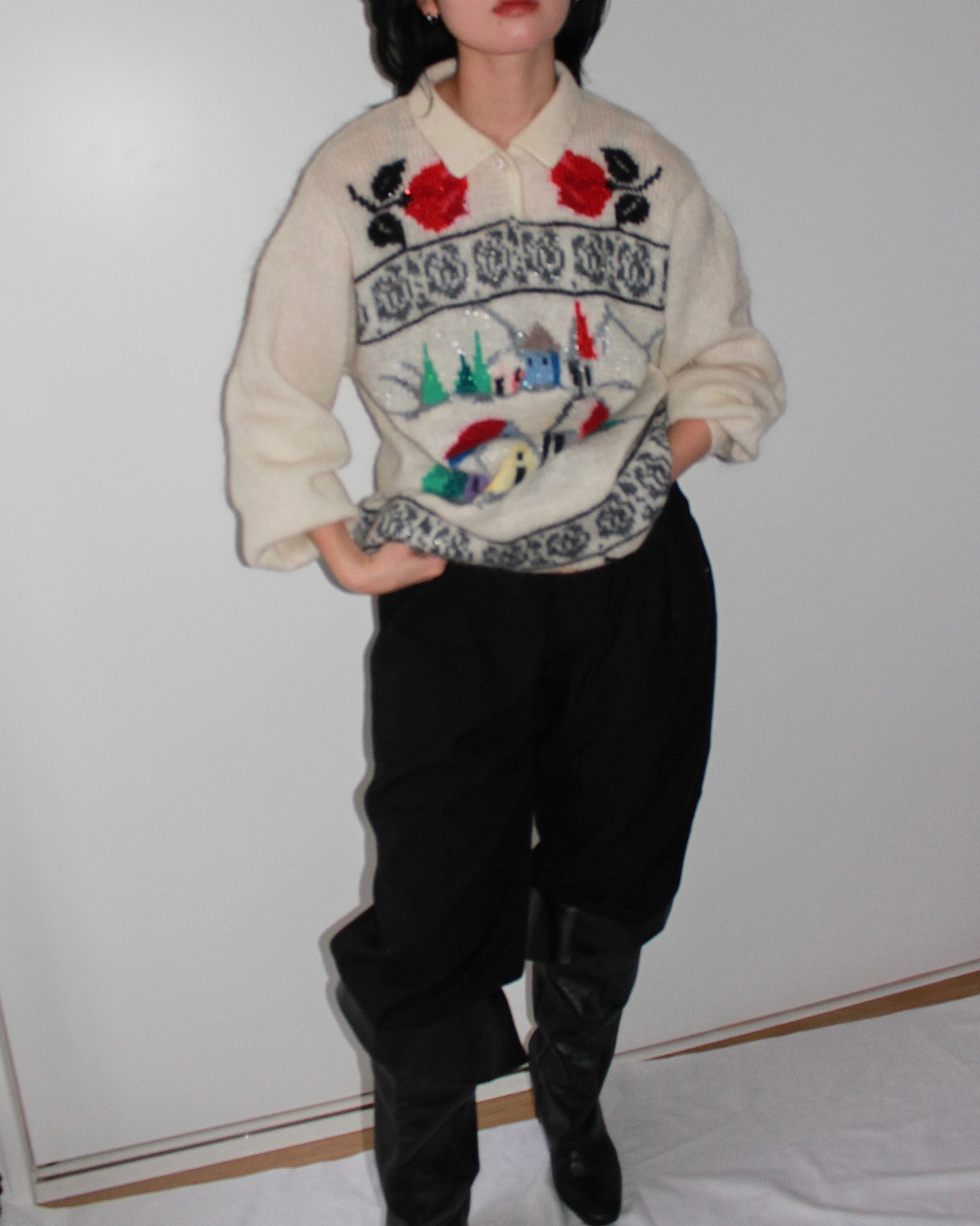 やや透け感のあるふんわりとした編み地で、軽くてあたたかい着心地。ドロップショルダー気味のゆったりとしたシルエットで、リラックスした雰囲気を演出してくれます。