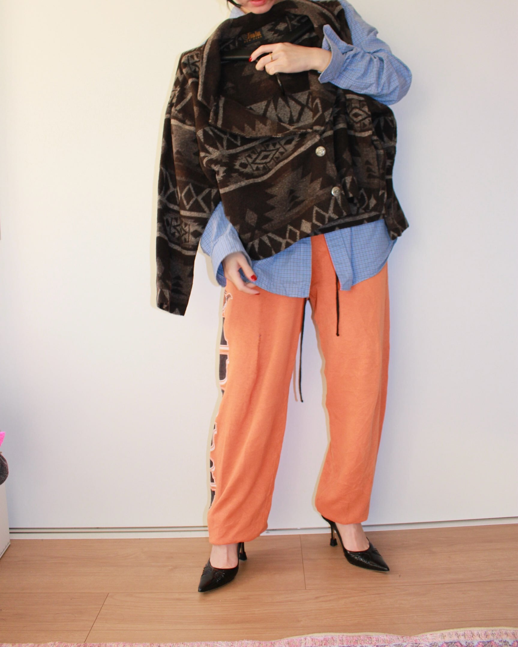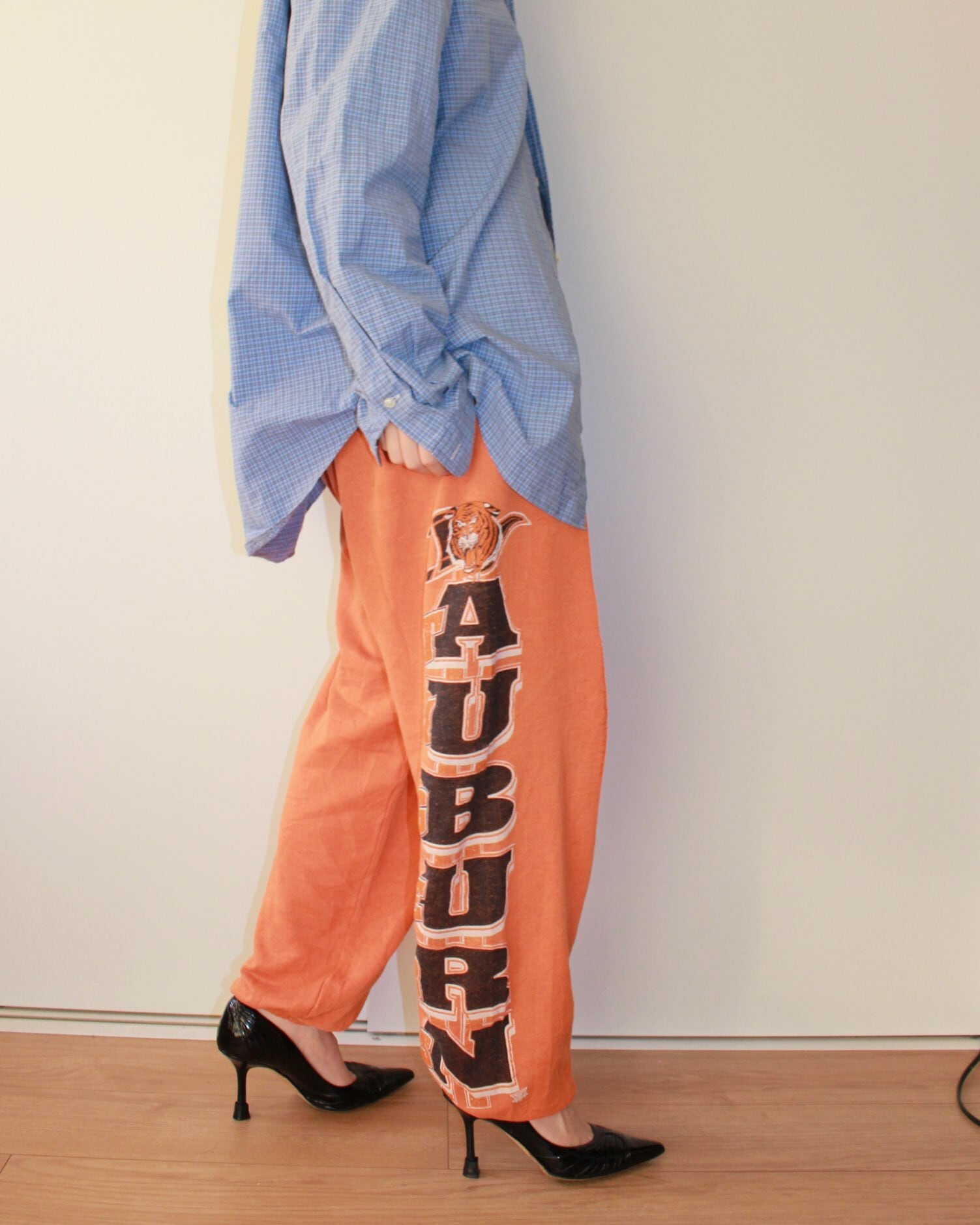 ほんのり色あせたタンジェリンオレンジが、コーデに柔らかな華やぎを添えてくれるカレッジスウェットパンツ。