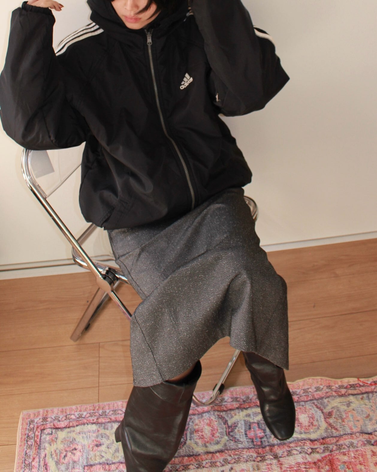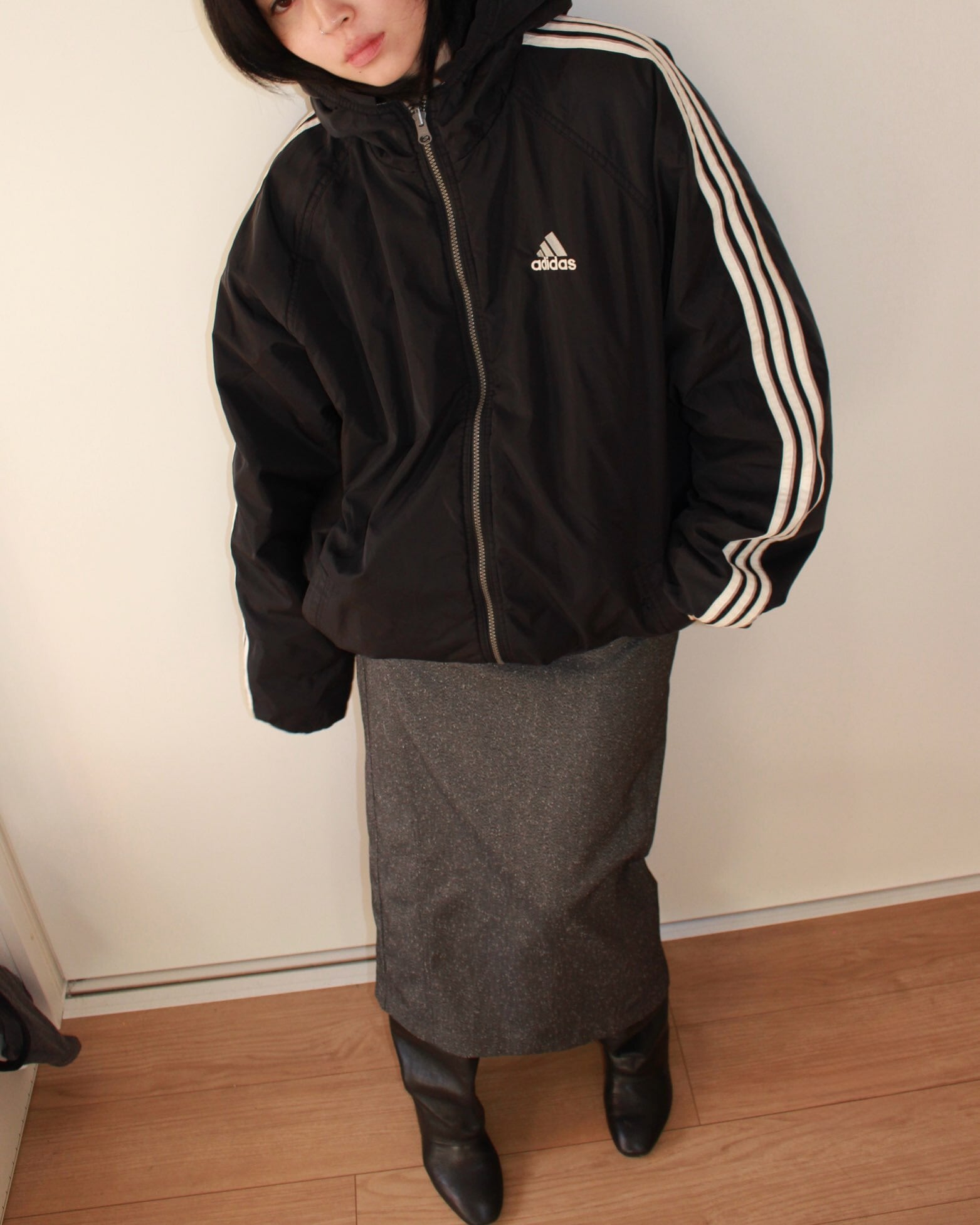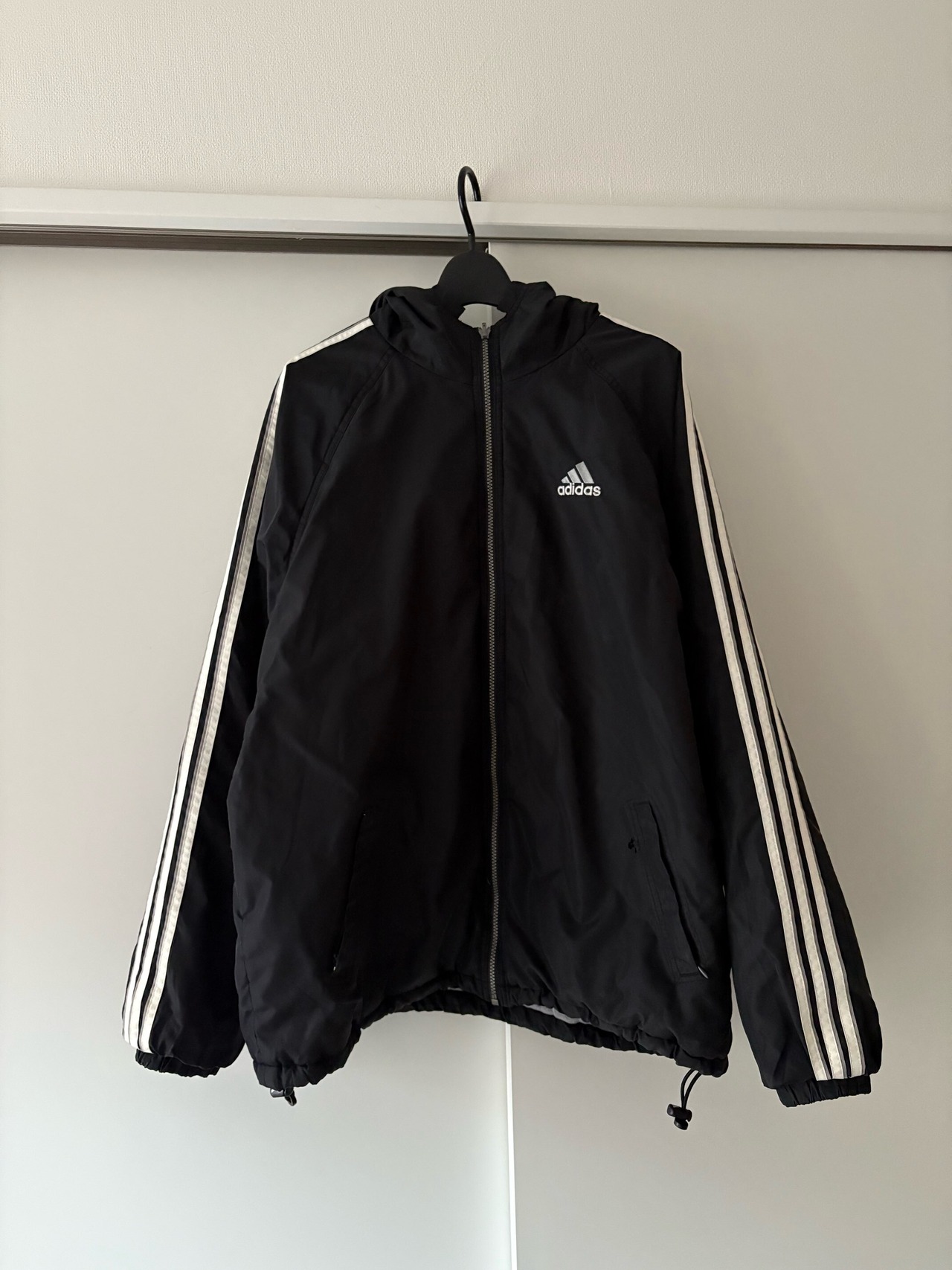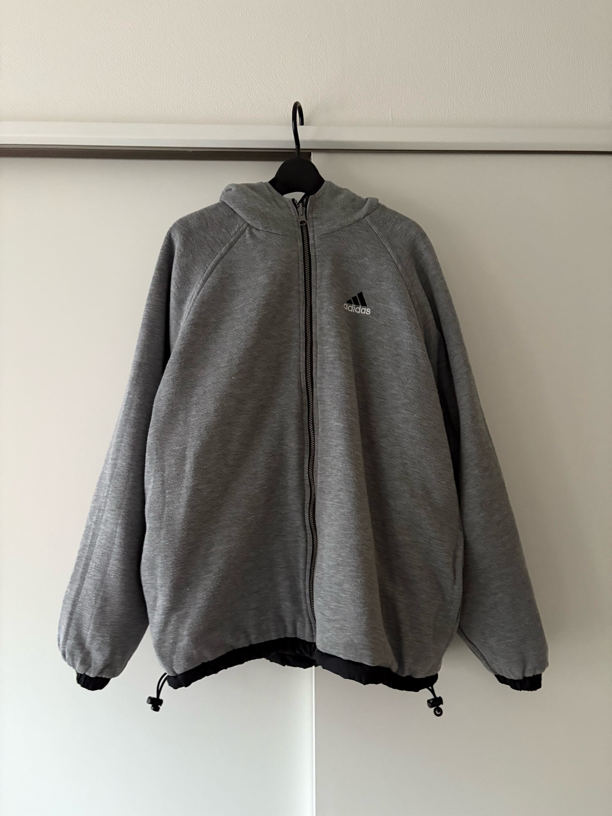 adidasのリバーシブルフーディジャケット。
