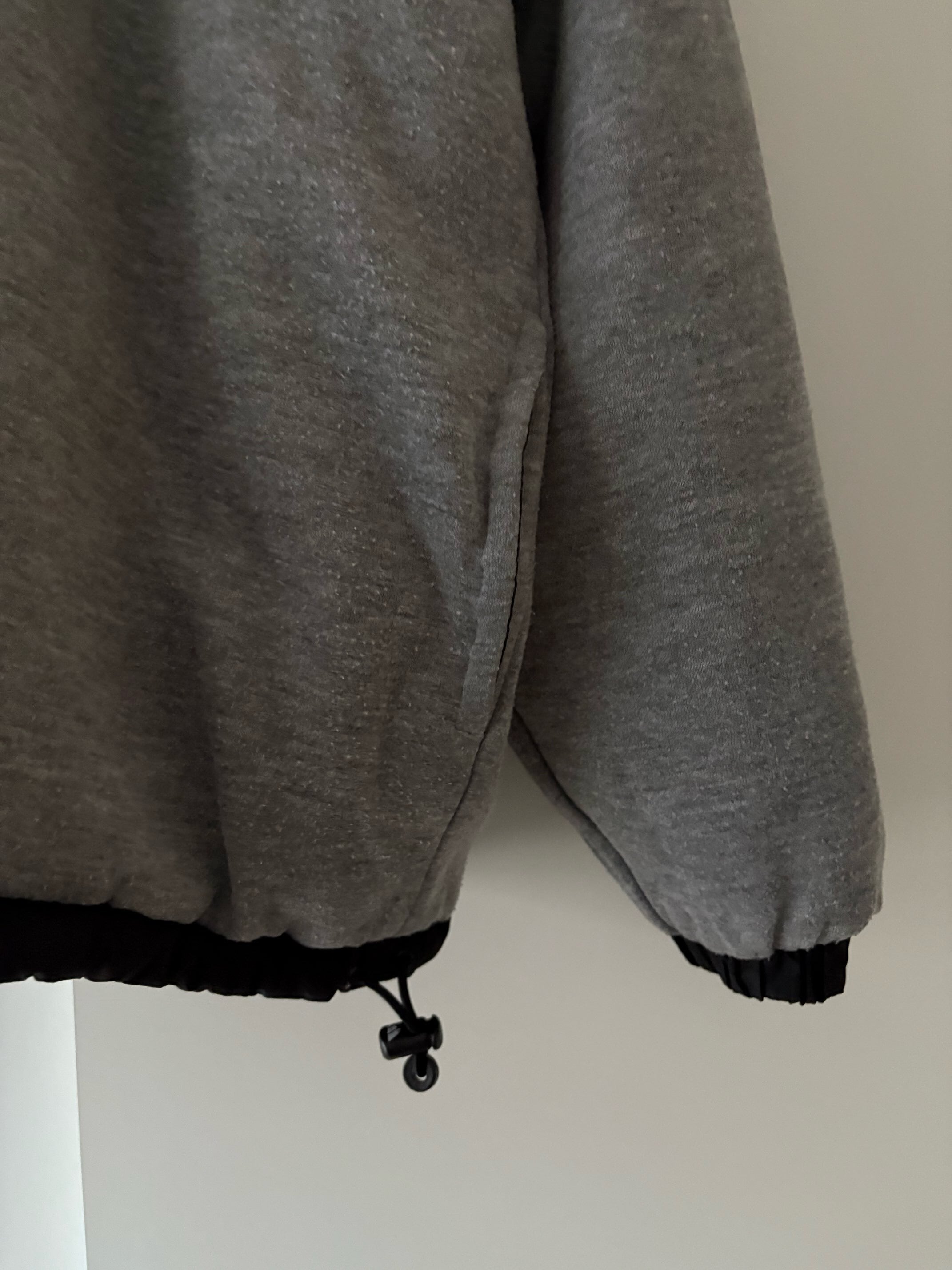 表側はナイロン素材、裏側はスウェット素材の仕様で、その日の気分やスタイリングに合わせて2通りの着方が楽しめます。
