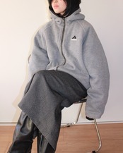 フード付き、フロントジップ仕様。裾にはドローコードが入っており、シルエットの調整が可能。