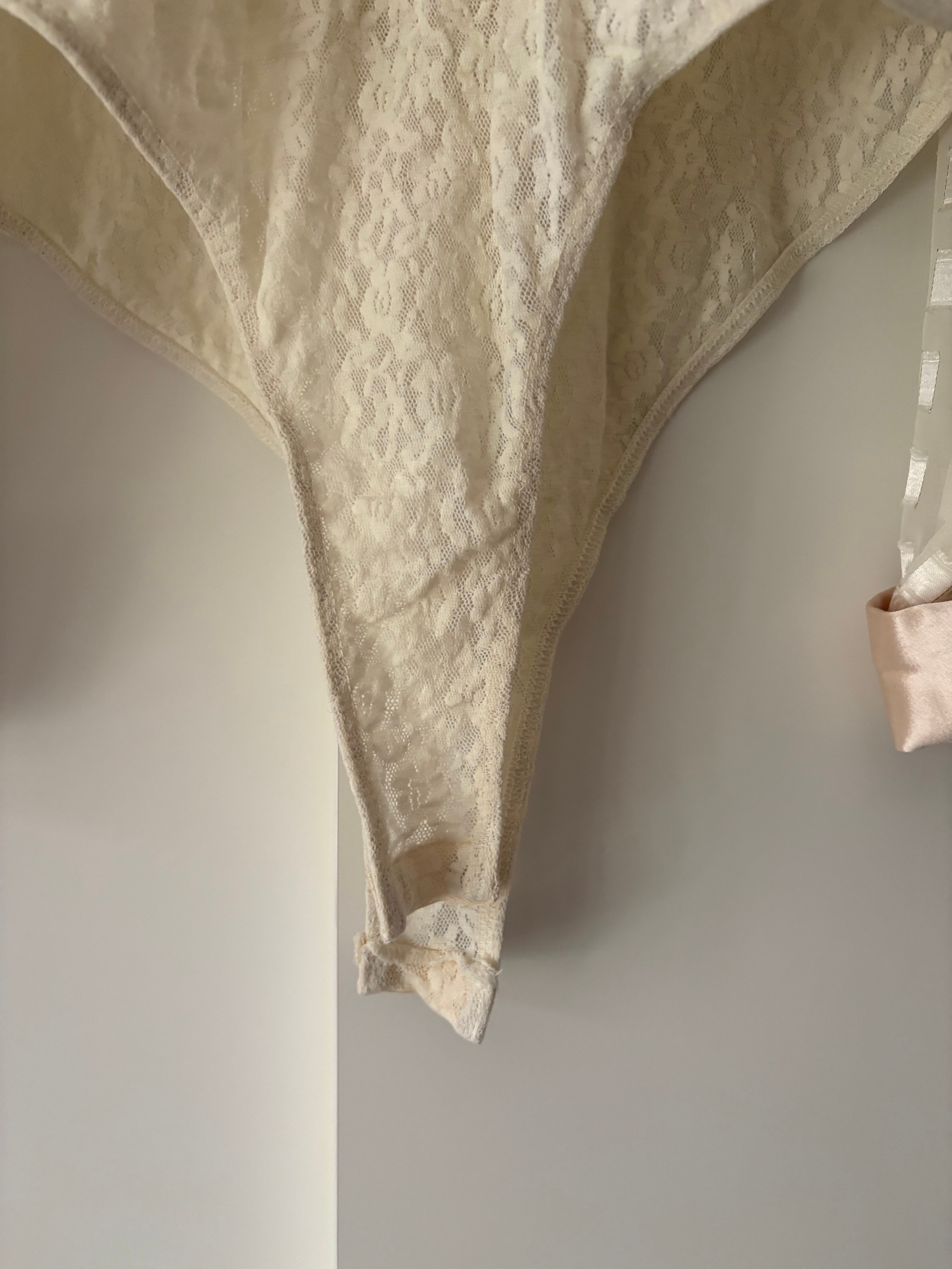 ボディスーツ型なので、今っぽくレイヤード風に出して見せるもよし。タックインをしてシルエットをすっきりときれいに見せるのもよし。
