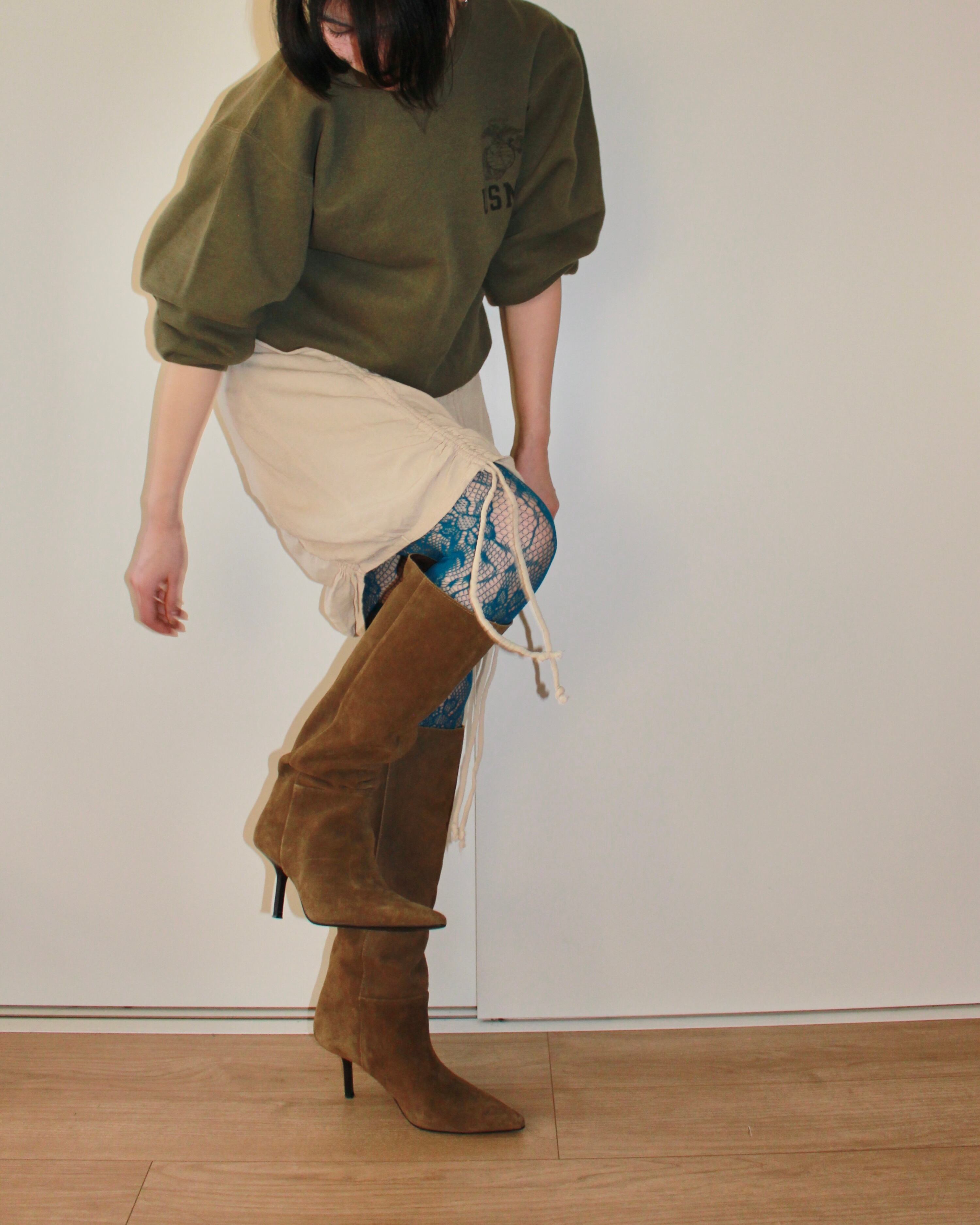 とろっと落ちるレーヨン素材に、サイドのドローストリングがつくる自然なギャザー。きゅっと絞ればラインが生まれて、ゆるめれば、ただラフで無防備なムードに。