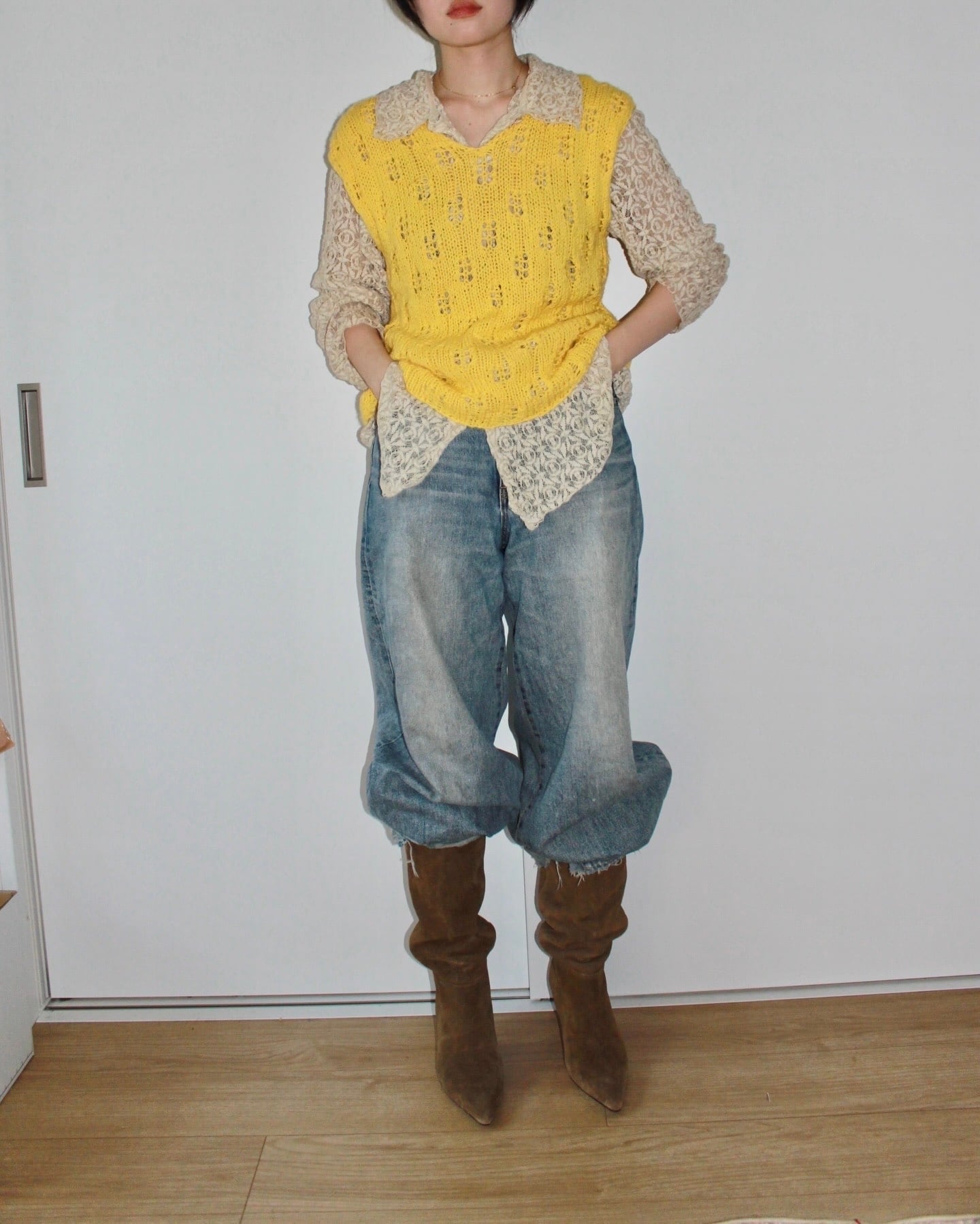 おそらくハンドメイド。何に重ねても良しな万能プリティーベストです。