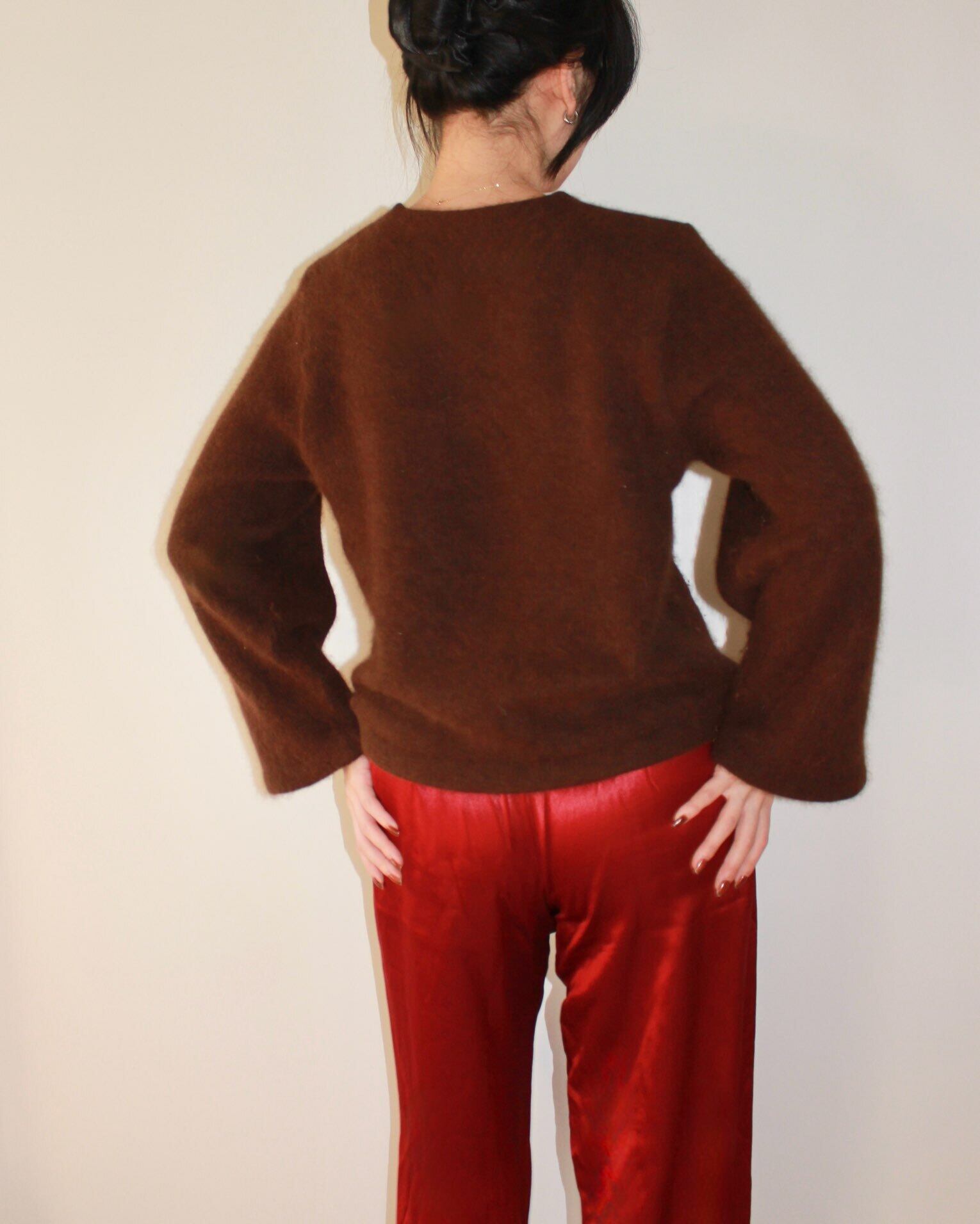 削ぎ落とされたデザインと、アンゴラ混を思わせるふわりとした起毛感。ノーカラーとフック留めがつくるのは、きちんとしすぎないちょうどいい余白。