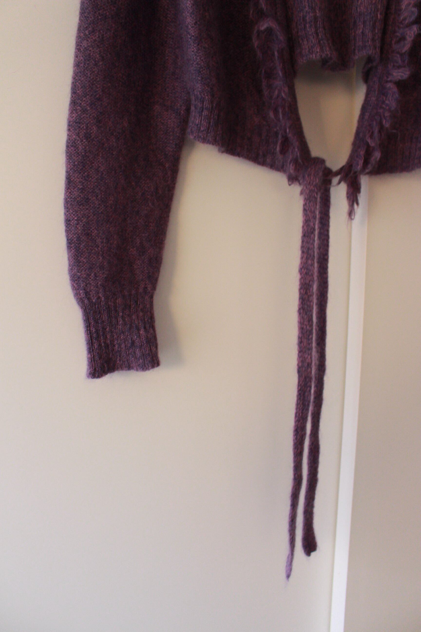 ラベンダー色の霞をまとったような、モヘアニットカーディガン。